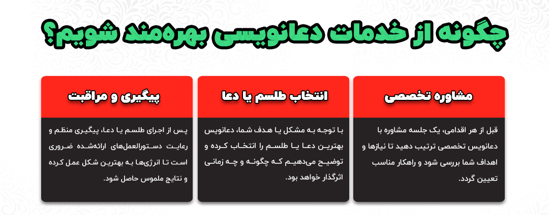 رعایت اصول شرعی و اخلاقی: تمامی دعاها و طلسمها با حفظ احکام دینی و اخلاقی انجام میشود